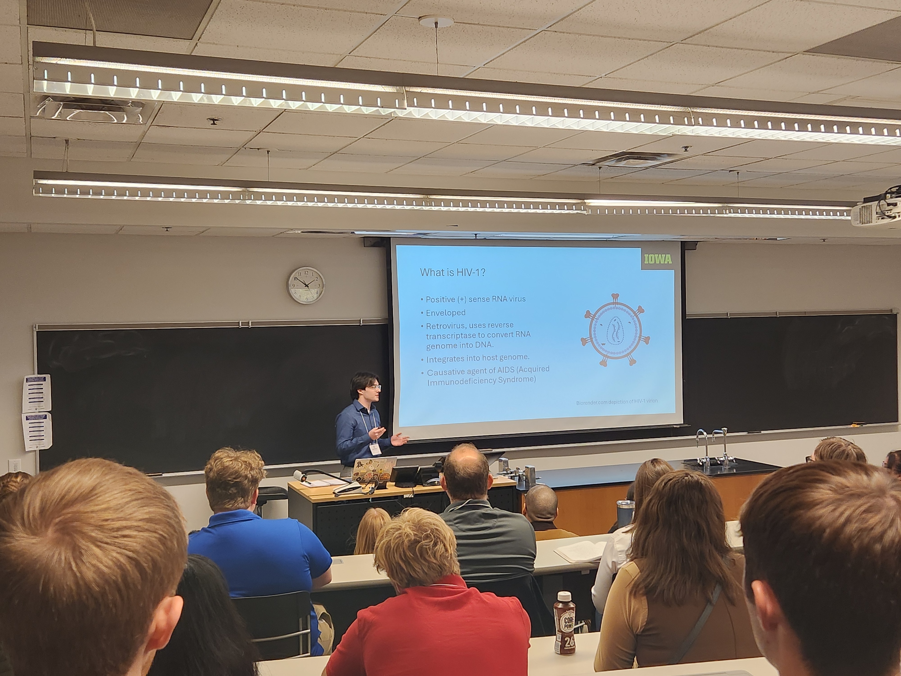Graduate and undergraduate students from the University of Iowa’s Department of Microbiology and Immunology were recognized for their outstanding research and science communication at the 85th annual ASM North Central Branch Meeting held in Cedar Falls, Iowa Nov. 7-8th.