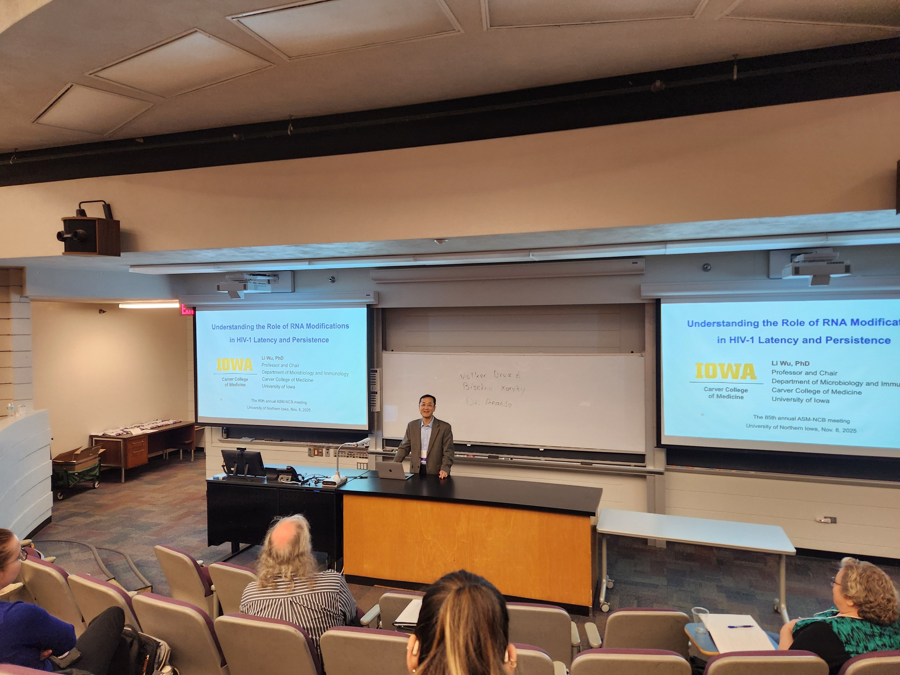 The Department of Microbiology and Immunology Chair and Department Executive Officer, Dr. Li Wu, was an invited speaker at the conference and presented “Understanding the Role of RNA Modifications in HIV-1 Latency and Persistence” and served on a panel.